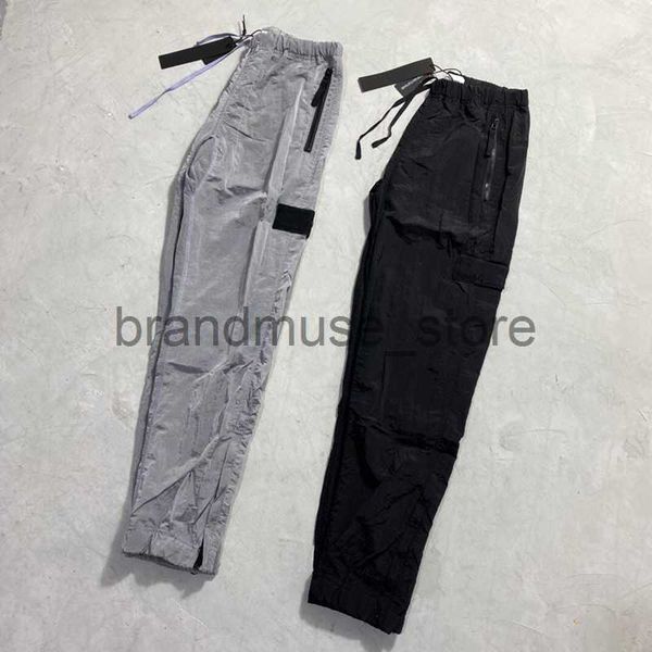 men's pants brand designers pants stone metal nylon pocket embroidered badge casual trousers thin reflective island pants size m-2xl j0, Black