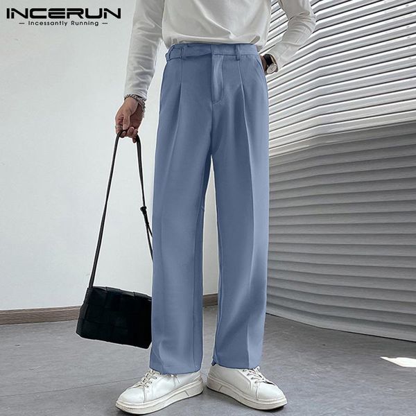 men's pants incerun 2021 men straight joggers loose pockets streetwear casual trousers with belt solid color fashion leisure pantalon, Black