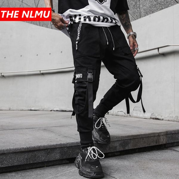 men's pants men multi-pocket elastic waist design harem pant streetwear punk hip hop casual ribbons trousers joggers male gw177, Black