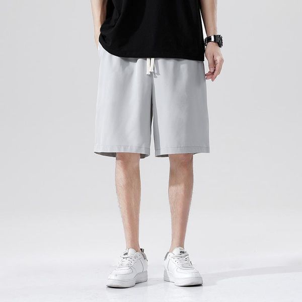 men's shorts summer ice silk knee length for men cooling quick-drying breathable thin jogger casual comfort drawstring loose beach, White;black