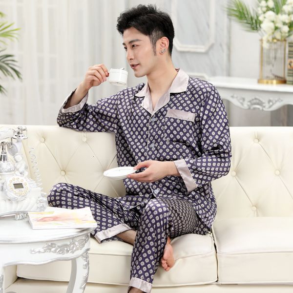 men's sleepwear men pajama sets silk satin pijama turn-down collar sleepwear short sleeve /long sleeve nightwear male 2 pieces sets hom, Black;brown