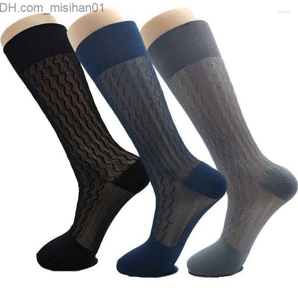 men's socks men's socks 5 pairs men's mid-tube nylon retro stockings fashion jacquard wave pattern long business good quality, Black