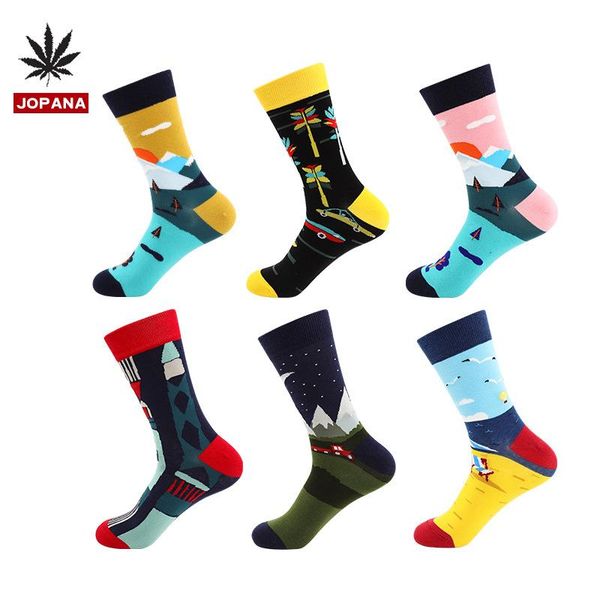 men's socks style sports breathable long fashion harajuku street skateboard for men and women happy cotton, Black
