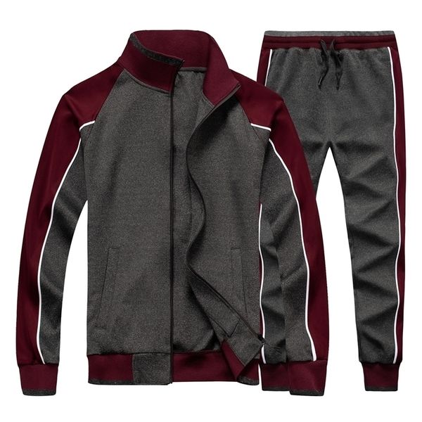 men's sportswear casual spring tracksuit men two pieces sets stand collar jackets sweatshirt pants joggers track suit running 201114, Gray