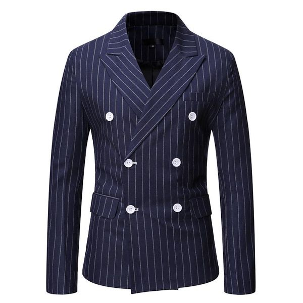 men's suits & blazers 2021 spring and autumn style striped casual double-breasted gun collar single suit, White;black