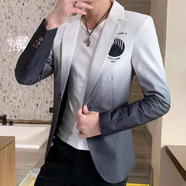 men's suits & blazers 2021 spring summer men blazer fashion gradient color casual slim fit fancy party suit jacket wedding business clo, White;black