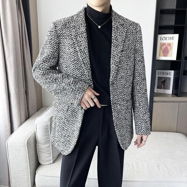 men's suits & blazers fashion young men blazer full geometric patterned polyester with notch lapel flap pocket decoration casual slim t, White;black