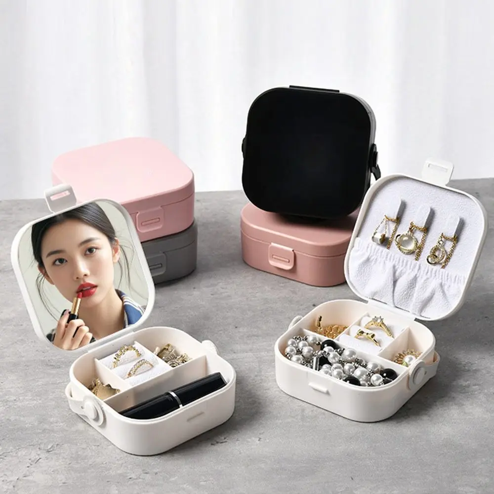New Square Jewelry Box Organizer Solid Color Leather Handheld Ring Earrings Necklace Holder Portable Jewelry Display Case Travel