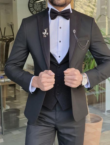 men's suits & blazers (jacket+pants+vest) tailor-made black costumes male set 3 piece groomsman wedding suit for man 2021 dress slim fi, White;black