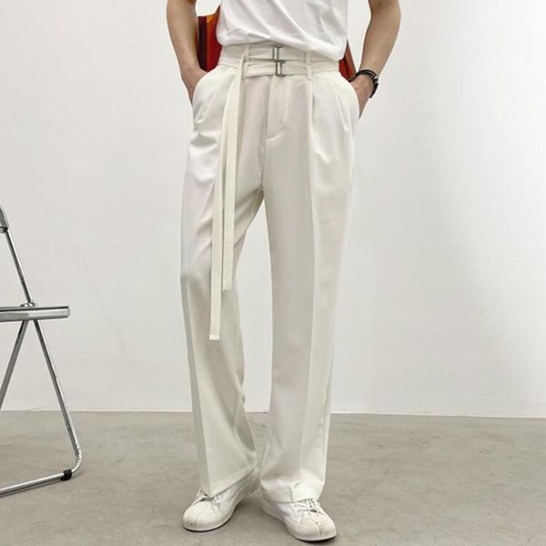 men's suits & blazers korean belt suit pants fashion black white dress men trousers loose straight casual mens wide-leg m-xl, White;black