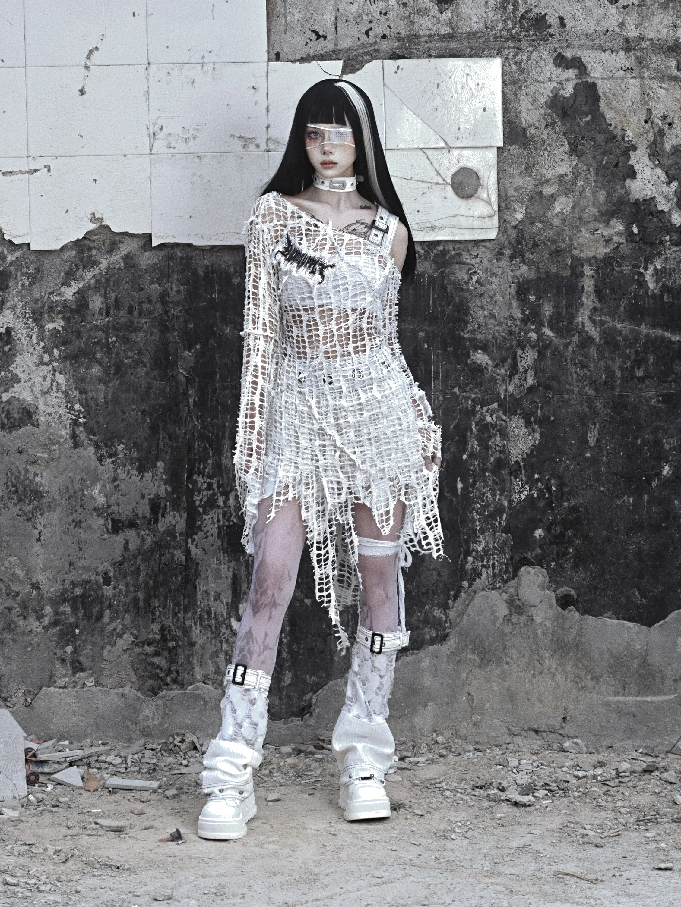 Одежда для Хэллоуина. Специальный дизайн. Трикотажная рваная нишевая рубашка в стиле панк с эластичным низом. Верх весны.