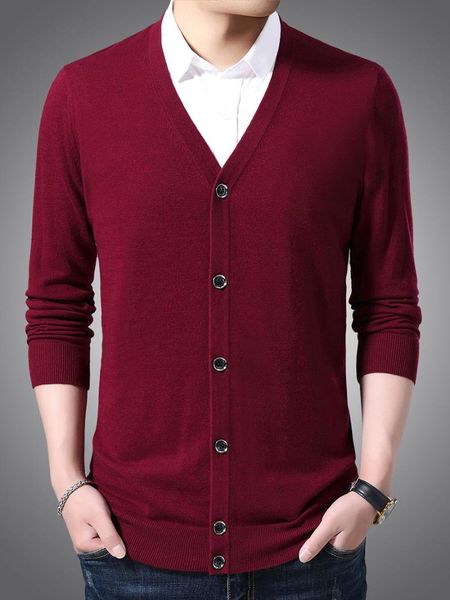 men's sweaters 100% pure wool autumn product thin v-neck middle aged long sleeve knitted cardigan solid color sweater, White;black