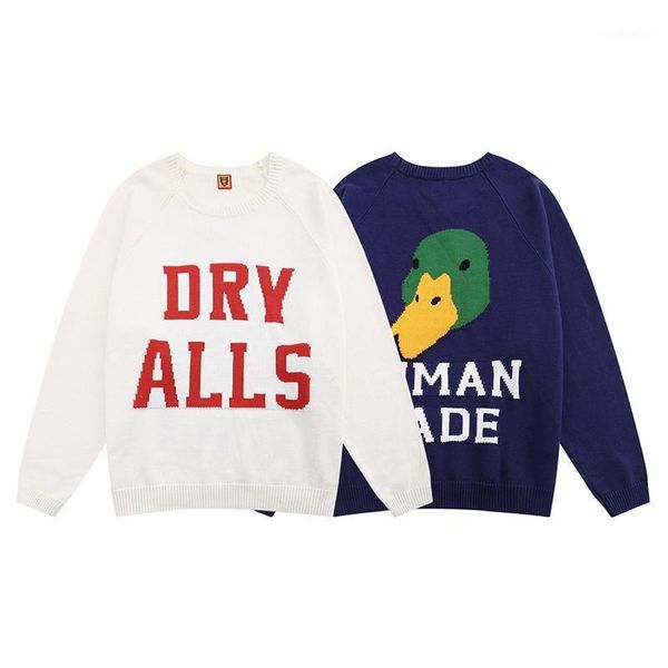 men's sweaters 2021 human made green headed duck letter clothes cartoon sweater trend round neck couple versatile men women, White;black