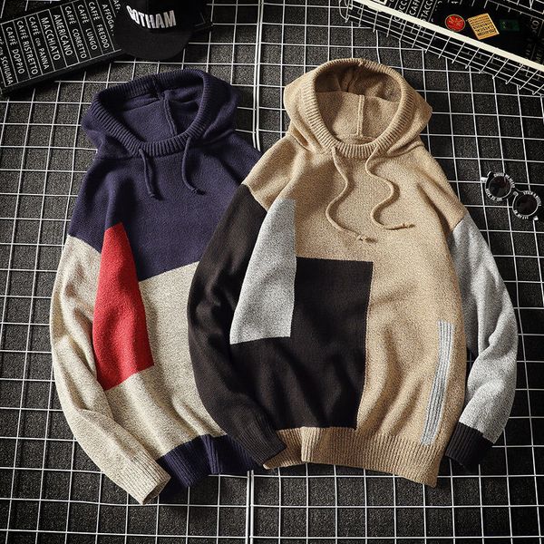 men's sweaters hybskr winter warm sweater korean streetwear fashion pullovers 2021 autumn patchwork casual male clothing, White;black