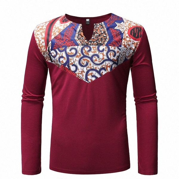 men's t shirt graphic tribal v neck casual daily patchwork print long sleeve lightweight fashion big and tall boho wine black p6ur#, White;black