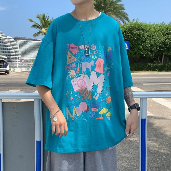 men's t-shirts 2021 summer short sleeve loose t-shirt cotton printing t shirt streetwear round neck fashion trend tshirt big size s-5xl, White;black