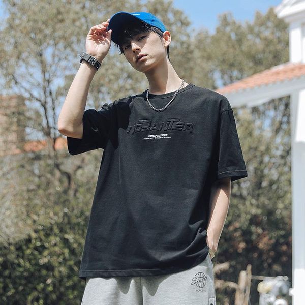 men's t-shirts 2021 summer three-dimensional print short sleeve t-shirt couple round collar women letter simple clothes, White;black