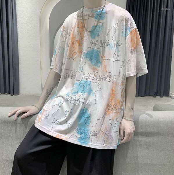 men's t-shirts 2021 summer youth tie-dye thin section comfortable five-point sleeve t-shirt fashion casual round neck pullover1, White;black