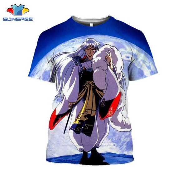 men's t-shirts anime inuyasha t-shirt 3d print cool cartoons pattern sesshoumaru 2021 summer casual short sleeve hip hop, White;black