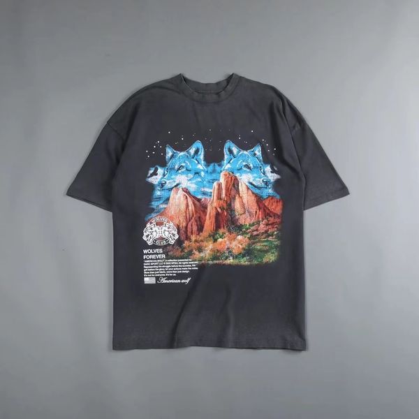 men's t-shirts darc sport 100% cotton thicken wolf print t shirt men fashion short sleeve summer streetwear t-shirts hip hop tees 2307, White;black