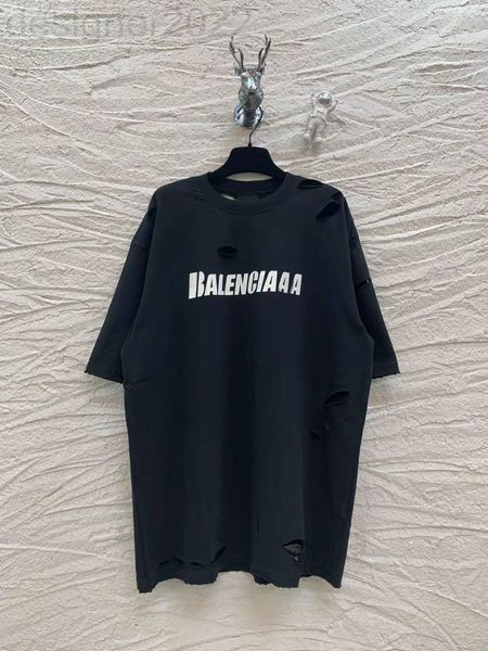 men's t-shirts designer 22ss early spring style hole crack letter printed short sleeve t-shirt for men and women correct loose fit hw9n, White;black