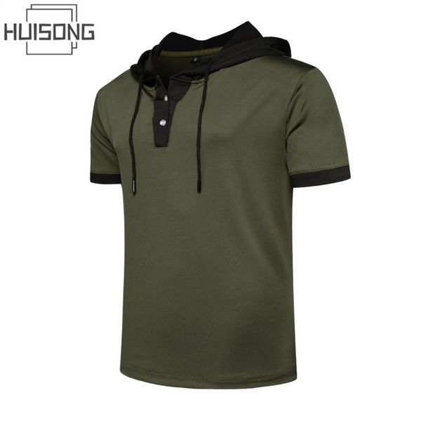men's t-shirts huisong mens short-sleeved hooded shirt 2021 summer trend men t loose outdoor running fitness plus size t-shirt hc194, White;black