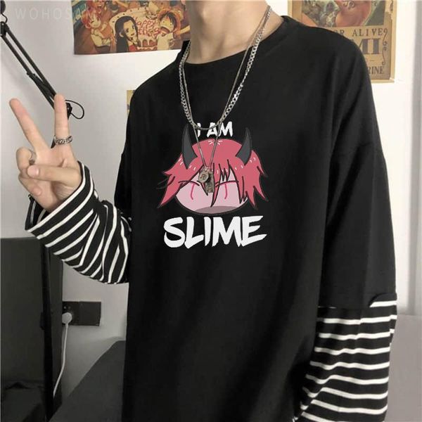 men's t-shirts kawaii anime that time i got reincarnated as a slime long sleeve t-shirt men summer casual streetwear oversized korean t, White;black