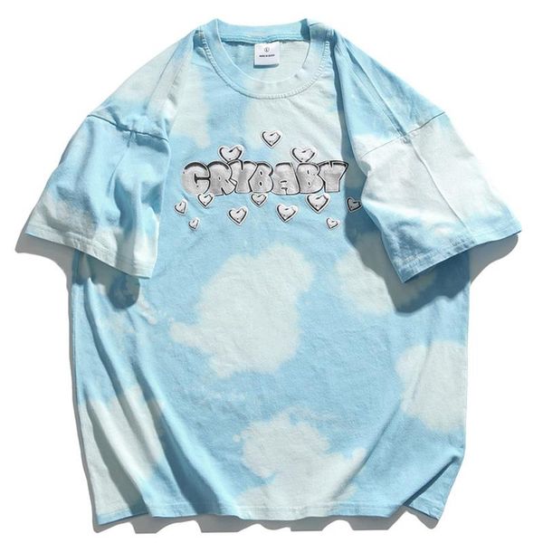 men's t-shirts mens letter printed tie dye t shirt short sleeve shirts 2021 summer oversized 100%cotton womens o-neck tee, White;black
