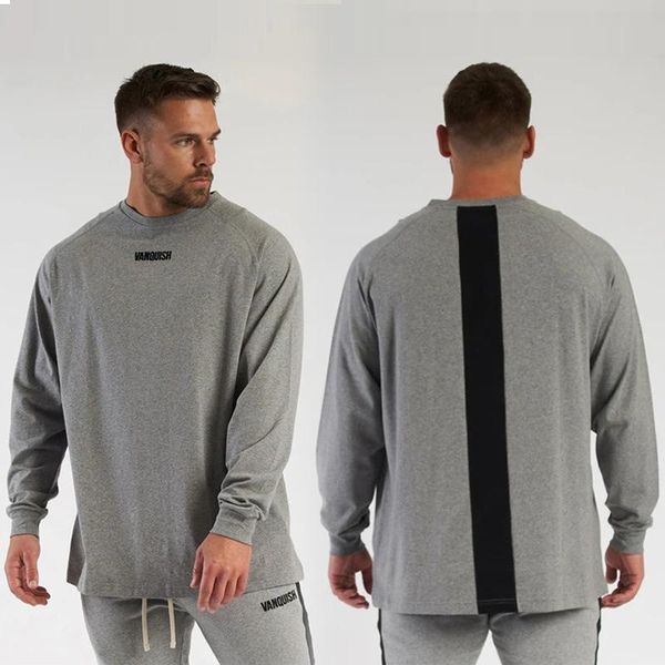 men's t-shirts pure cotton oversized tshirt casual long-sleeved t shirt winter bottoming gyms joggers fitness round neck pullover, White;black