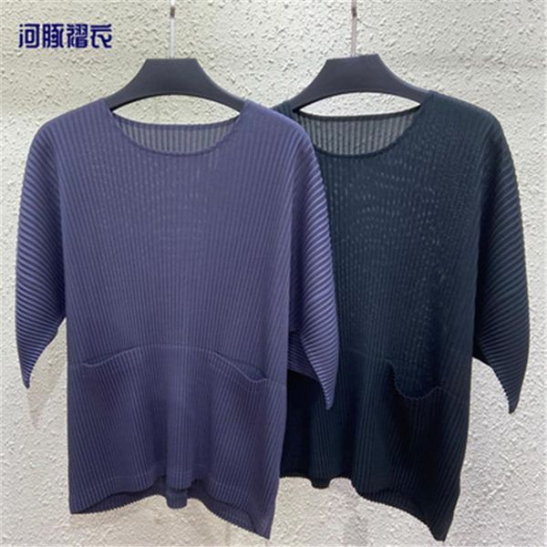 men's t-shirts short-sleeved t-shirt pleated summer thin miyake japanese trend wind pressure fashion all-match bottoming shirt, White;black