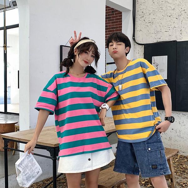 men's t-shirts summer comfortable casual couple t-shirt fashion all-match short-sleeved 2021 clothes male hip-hop fun loose striped t, White;black