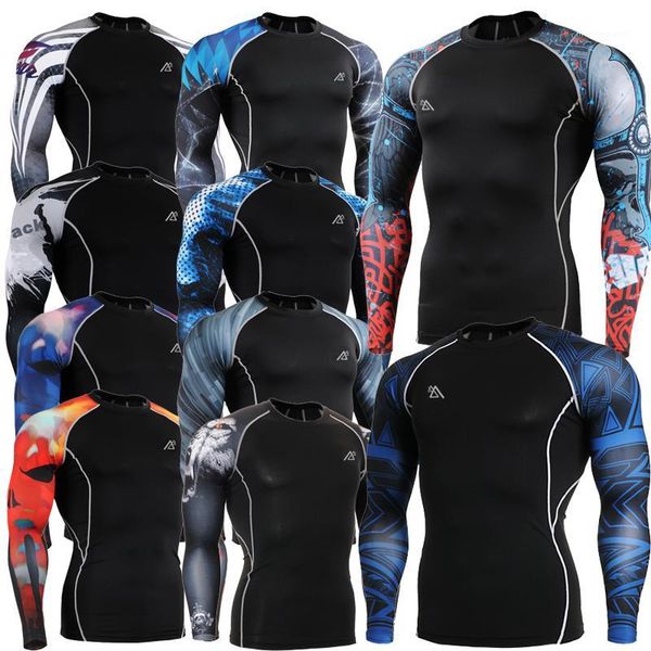 men's t-shirts wholesale-long sleeve skin complete graphic compression shirts multi-use fitness gym mma crossfit running sports shirts, White;black