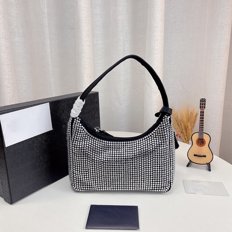 Diamond Women Shoulder HOBO Bag 8 Color Underarm Purses Fashion Lady Designers Luxurys Handbag Bling Nylon High Quality Shiny Handbags, Ivory