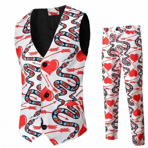 men's tracksuits men's tracksuits men's casual fashion two-piece suit printed coat vest pants set comfortable soft pant party, Gray