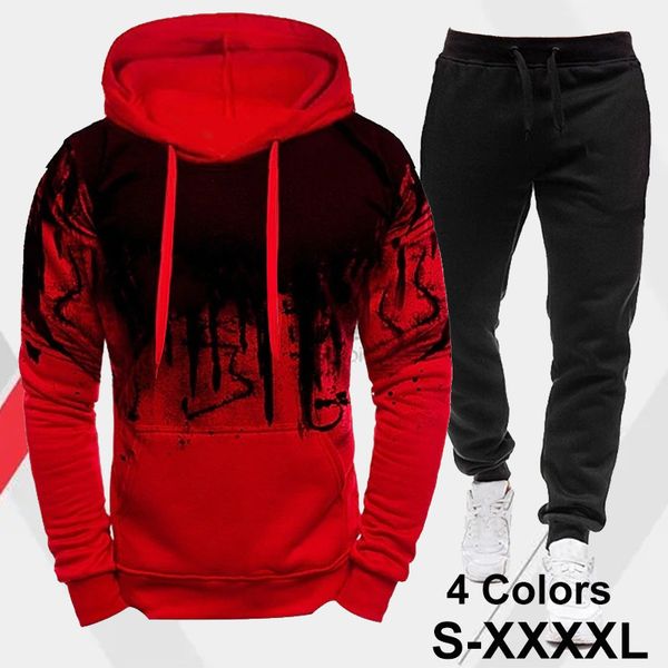 men's tracksuits jogging suits fashion printed for men casual hoodie pant 2 piece set male sportswear gym clothing sweat 230130, Gray