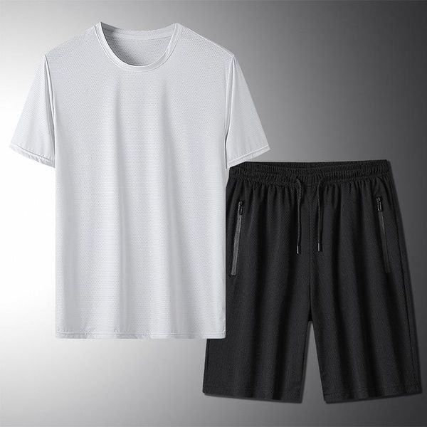 men's tracksuits summer men sets short-sleeved cool 2 piece set black white thin loose pockets o-neck daily casual solid short, Gray