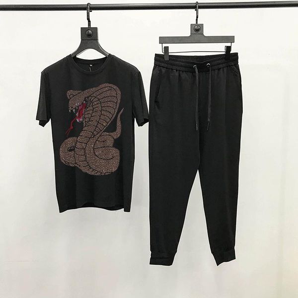 men's tracksuits summer shiny animal diamond casual sets jogging hip-hop comfortable track suit couple oversized t-shirt + pants, Gray