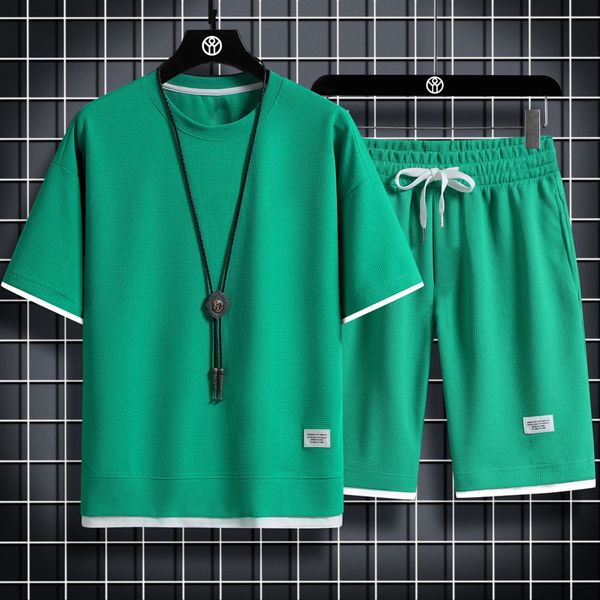 men's tracksuits summer men's two-piece linen casual t-shirt and shorts set men's sportswear fashion short sleeved track suit, Gray