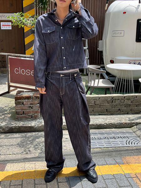 men's tracksuits syuhgfa wear long sleeve denim coat causal 2023 spring autumn washed straight jeans suit korean fashion two pieces set, Gray