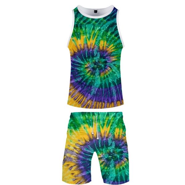 men's tracksuits t shirt men sets fashion summer short sleeve sporting suit harajuku tie dyeing print t-shirt +shorts mens casual cloth, Gray