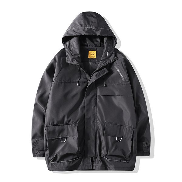 men's trench coats big japanese-sized men's jacket -winded harajuku with hoodie casual loose pockets in the fashion tools long s, Tan;black