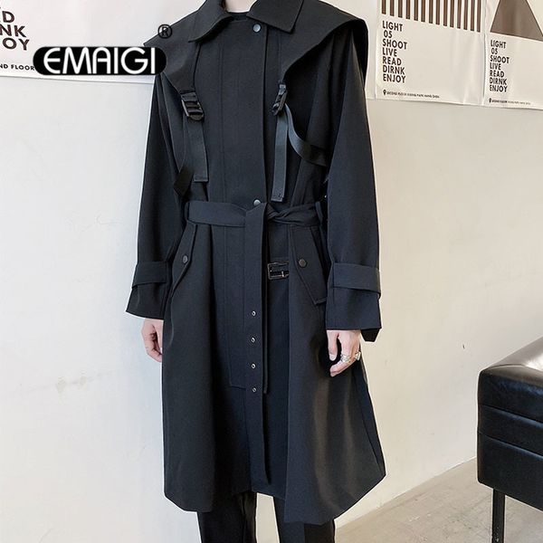 men's trench coats men functional style strap casual loose coat male japan harajuku streetwear jacket windbreaker outerwear 230828, Tan;black