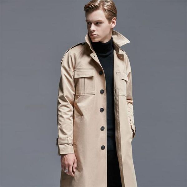 men's trench coats single-breasted coat men's mid-length khaki handsome british jacket large size 2022 spring autumn youth veste h, Tan;black