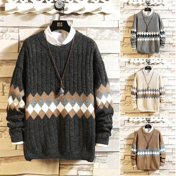 men's vests 2021 autumn and winter japanese white brick wall diamond large-size round-neck long-sleeved sweater mmel 5x, Black;white