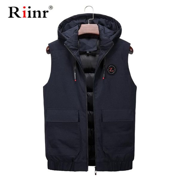 men's vests 2021 brand mens jacket sleeveless vest winter fashion casual coats male cotton-padded men thicken waistcoat 3xl, Black;white