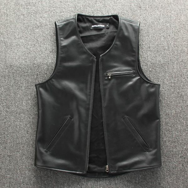 men's vests casual japanese genuine leather vest mens horsehide slim fit motorcycle biker collarless sleeveless riding jacket guin22, Black;white
