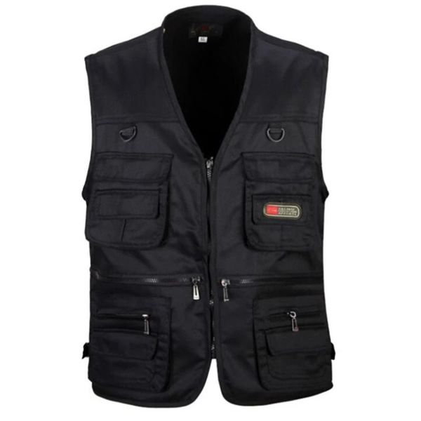 men's vests vest men army green waistcoat multi-pocket travel or work wear sleeveless jacket plus size, Black;white