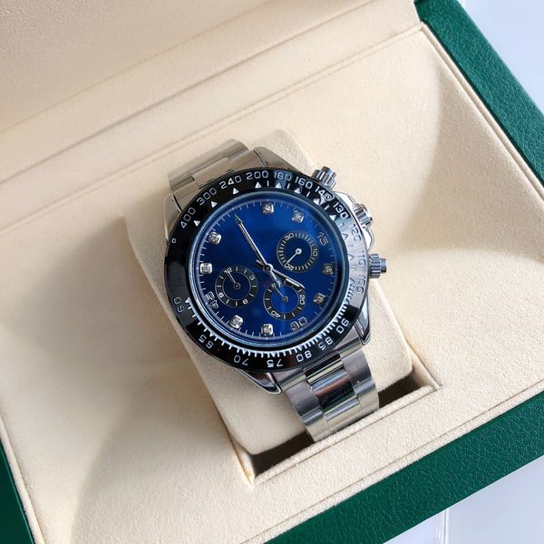 men's watch blue dial 40mm quartz movement stainless steel scratch resistant blue crystal folding buckle montre de luxe automatic mecha, Slivery;brown