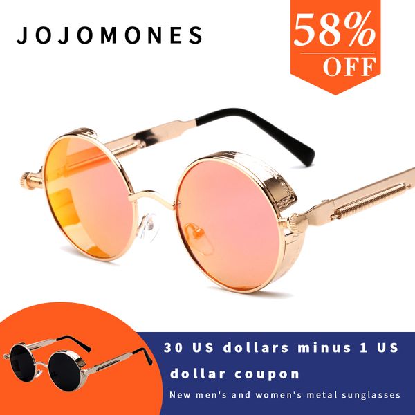 men's and women's universal metal round steampunk sunglasses men's fashion glasses jo jomones brand retro frame old sun, White;black