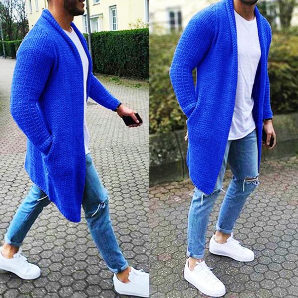 men's wool cardigan spring autumn warm thick solid spacious pocket fashion long sweaters knitted cotton casual male jackets, White;black